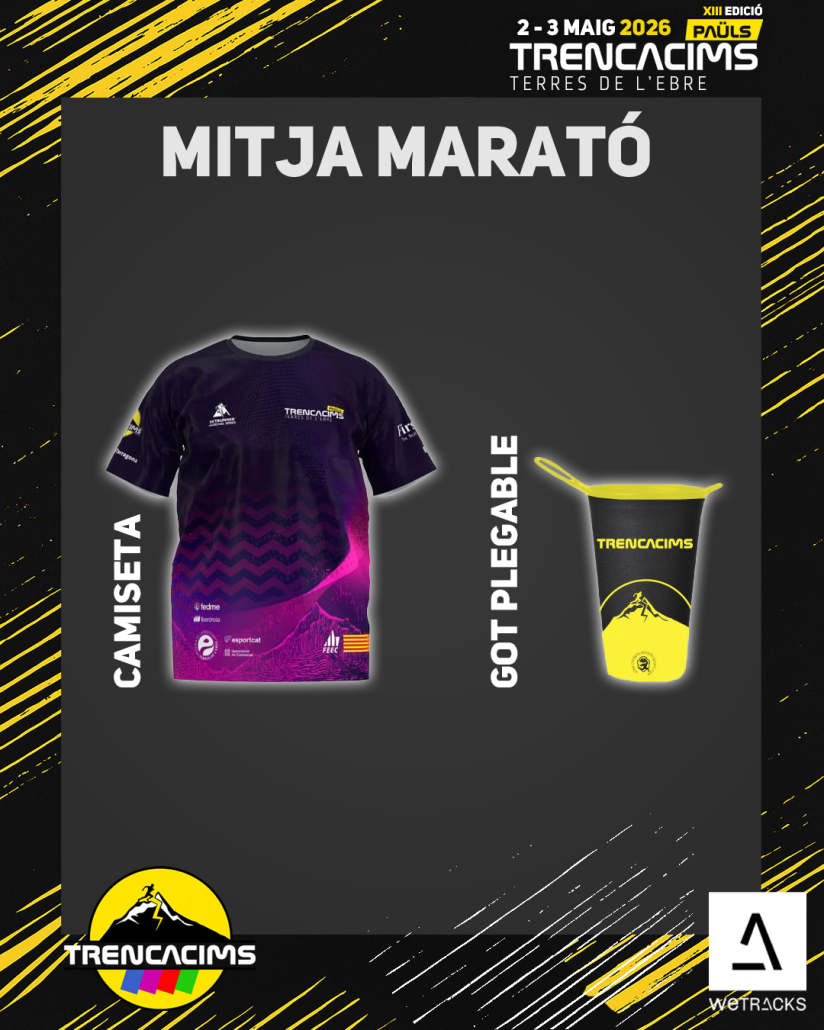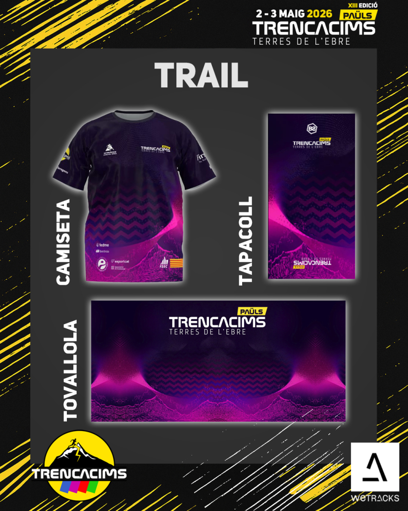 [CAST] 👕 Os dejamos aquí todo el merchan que encontraréis en 🛍 la bolsa del corredor de cada carrera donde estéis inscritos y todo el material disponible 👕🧦🧢 que podréis adquirir durante todo el fin de semana de la Trencacims Paüls – Terres de l’Ebre 🏃♀️➡️🏃➡️⛰️🚶♂️🚶♀️
