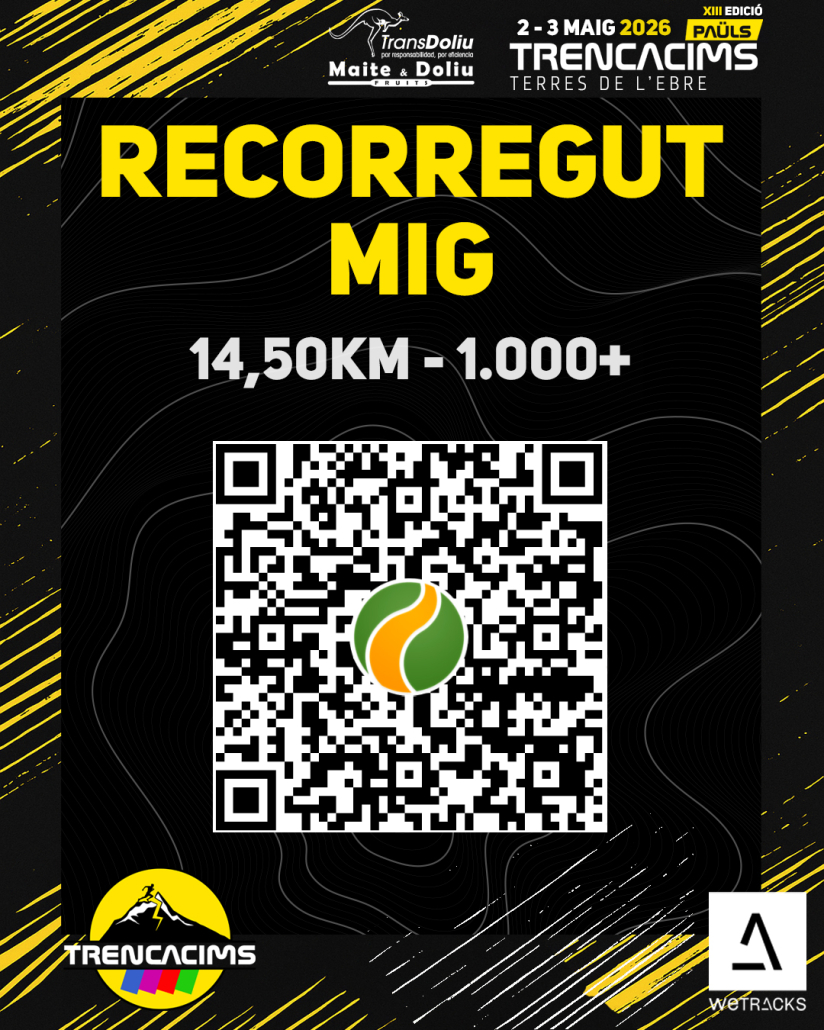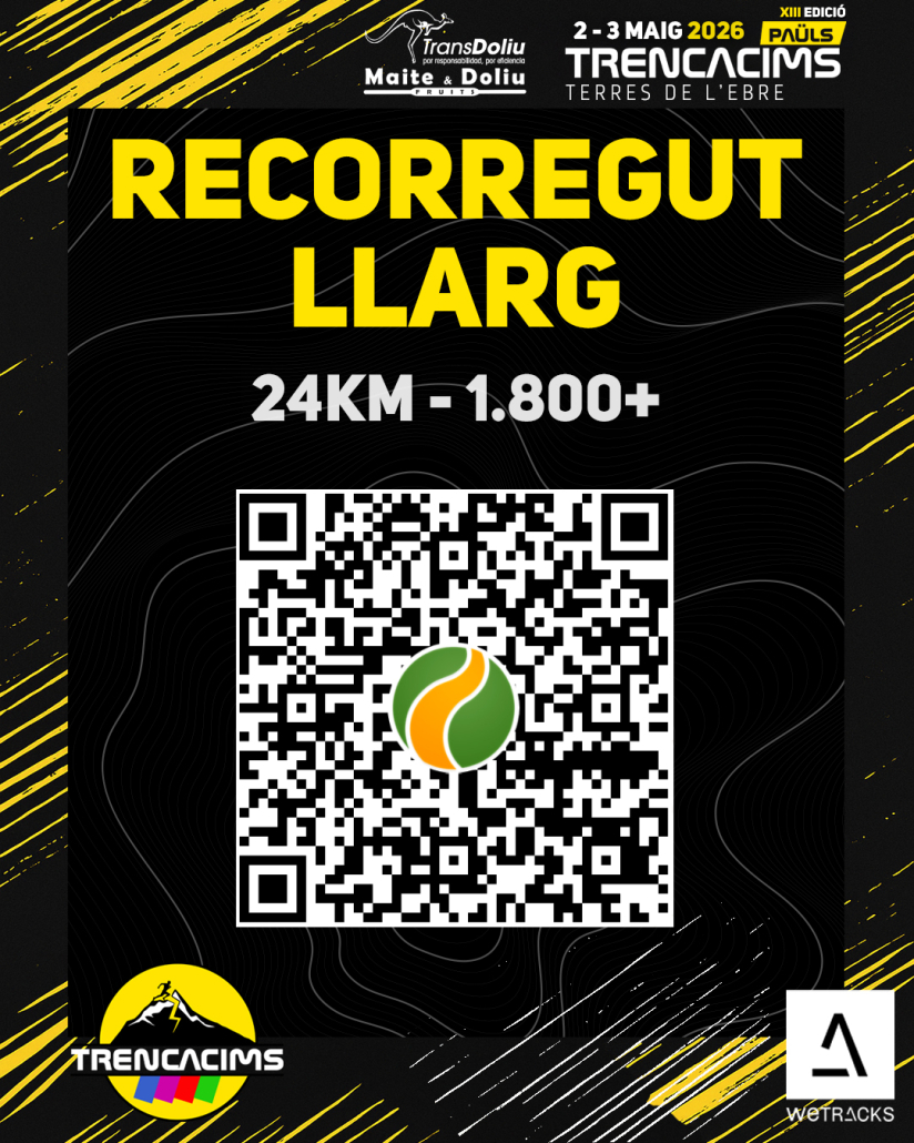 ⚠️ MUY IMPORTANTE: en la página web (trencacims.com) encontraréis los 3 tracks, también en este post con código QR, es altamente recomendable, sobre todo para el recorrido largo, descargarlo 📲 y llevarlo al reloj ⌚️ o teléfono móvil. Habrá grupos y puntos de reagrupación, pero no está de más llevar el track ❗